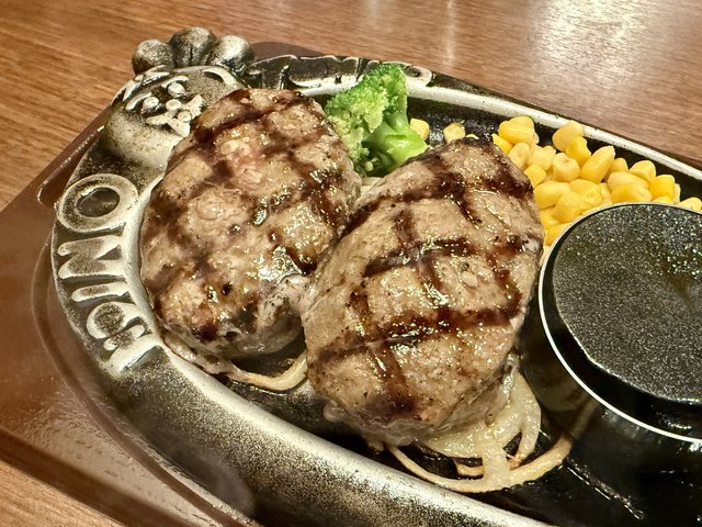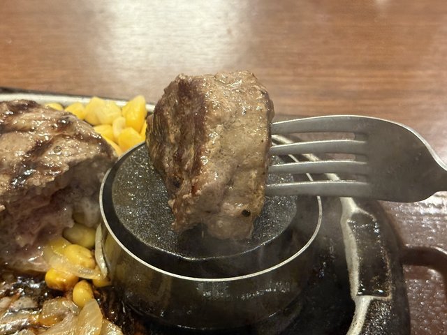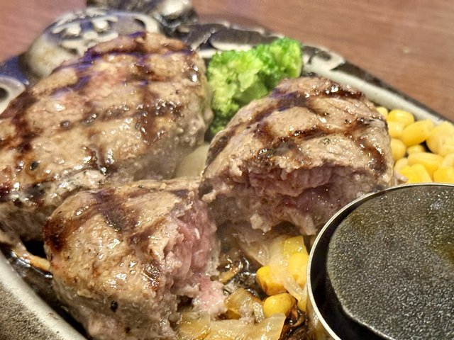 熱々の鉄板にのって運ばれてくるハンバーグは、ジュージューと音を立てながら登場。