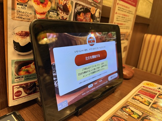 そのほかにもステーキ、パスタ、オムライス、ピザ、和食系など多彩なメニューが揃い、注文はタブレットで行うスタイル。