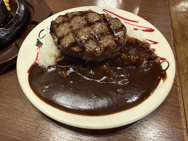 今回は「弾丸ハンバーグ レギュラー240g」にAセット(ライス&黒カレーバー、スープバー付き)を注文しました。