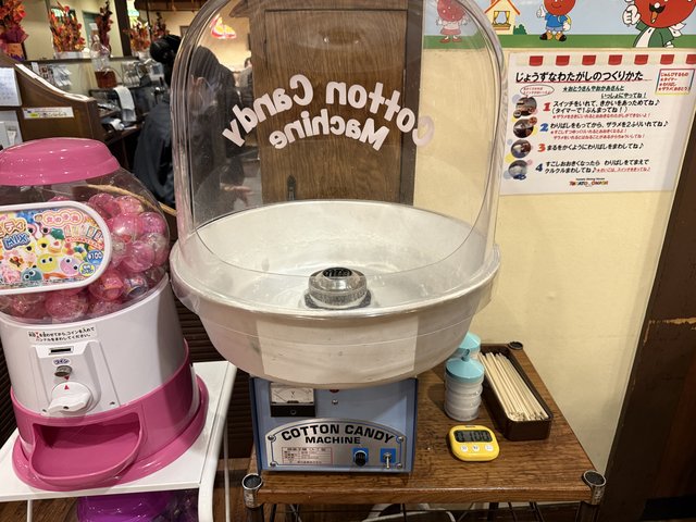 さらに店内には無料の「わたがし機」も設置されており、子どもたちに大人気。