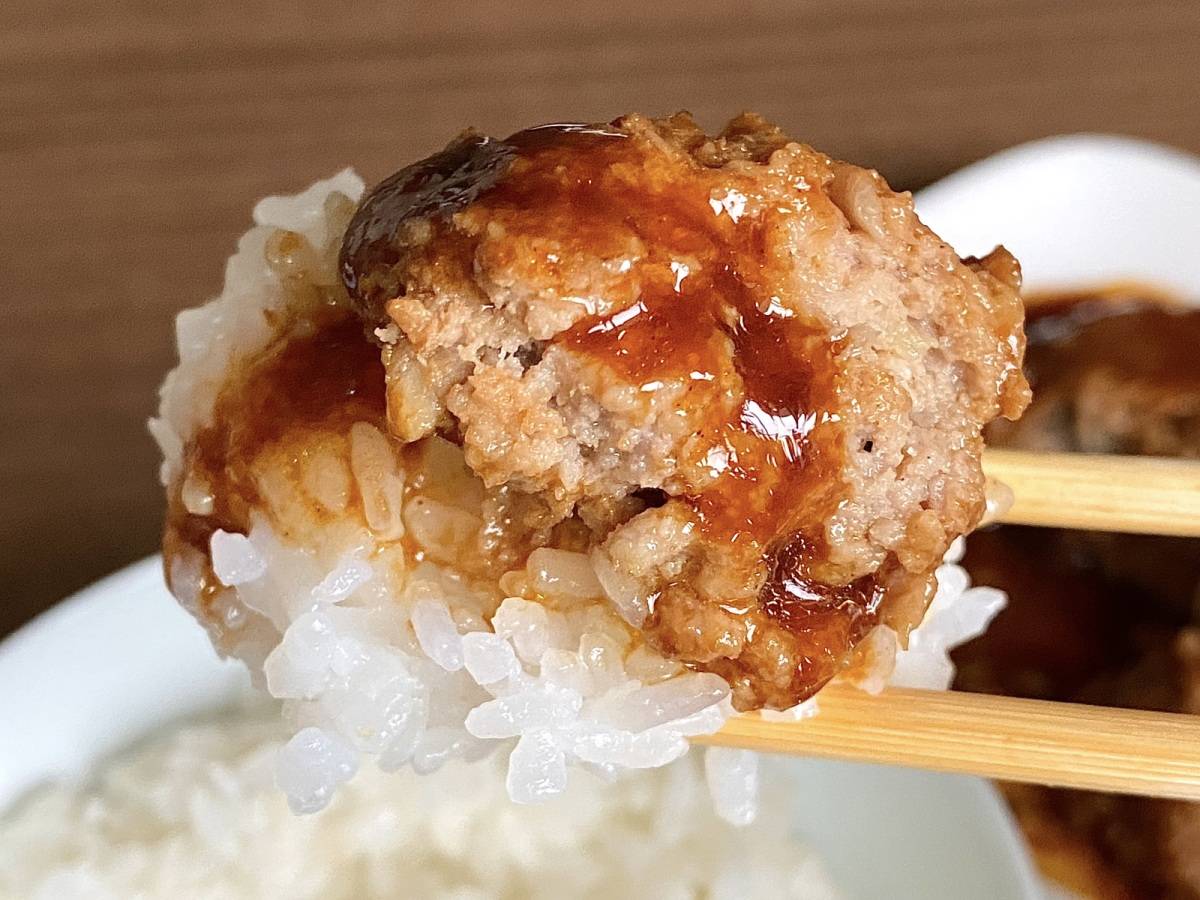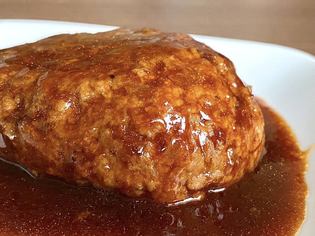 デミグラスソースがたっぷりかかった、ジューシーなハンバーグ。