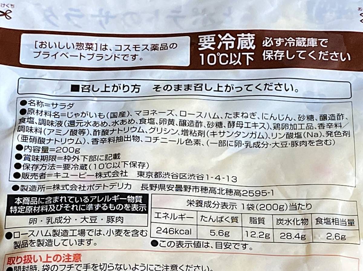 ◆ドラッグストア コスモス ハムとポテトのサラダ