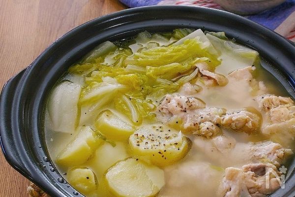 ほろほろっと美味しい!手羽元とじゃがいもと白菜のうま塩鍋