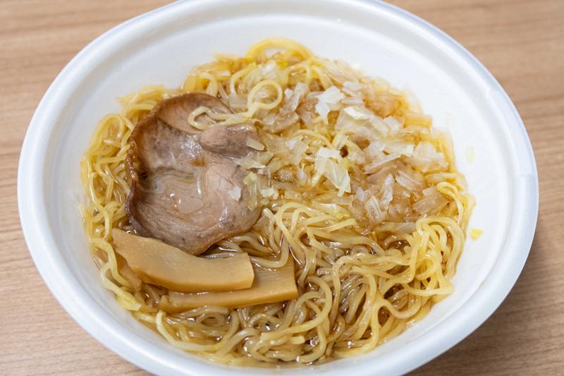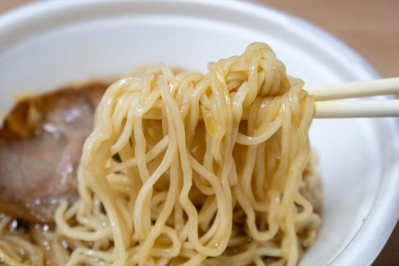 加熱後はフタのシートを“引くだけ”でスープと麺が合流するセパレート構造。麺がスープに浸かりすぎないため、コンビニ麺の弱点である伸びを防ぎやすい点も魅力。