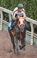 後ろ足を1歩前に踏み込んで片手で相手を突く追い突きも得意です。