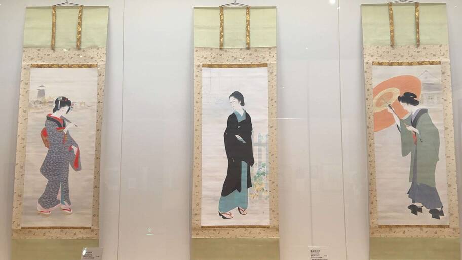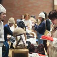 お客さんたちが作品を一つひとつ丁寧に眺めている様子から、ふみ子さんの世界への温かな雰囲気が伝わってきます。