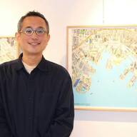 奥の山や、道の奥行きが普通の絵では表現できない表現になっています。