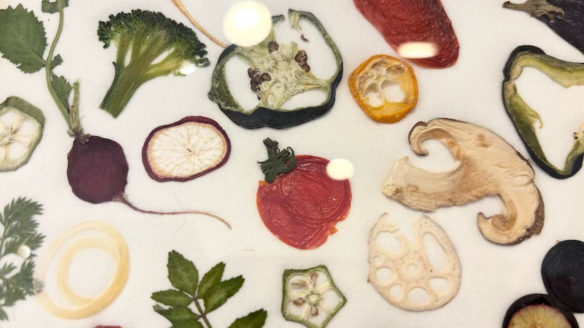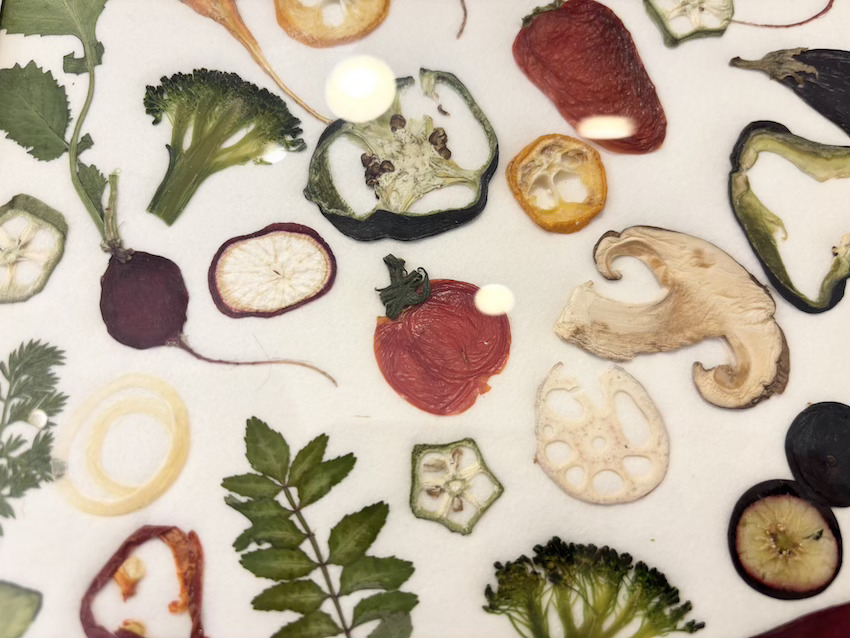 なんと、すべて本物の野菜を押し花にして作られているのです。