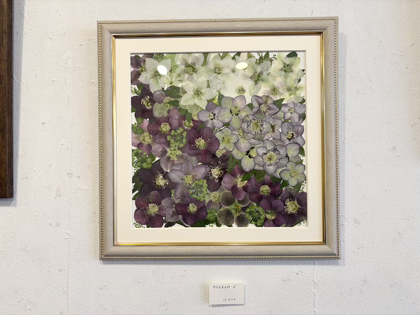 押し花の作品がたくさんあり、ふわりと花の香りがしたような気がしました。