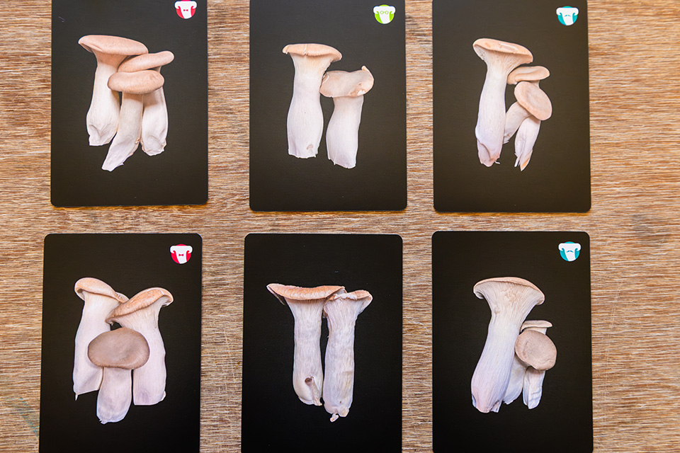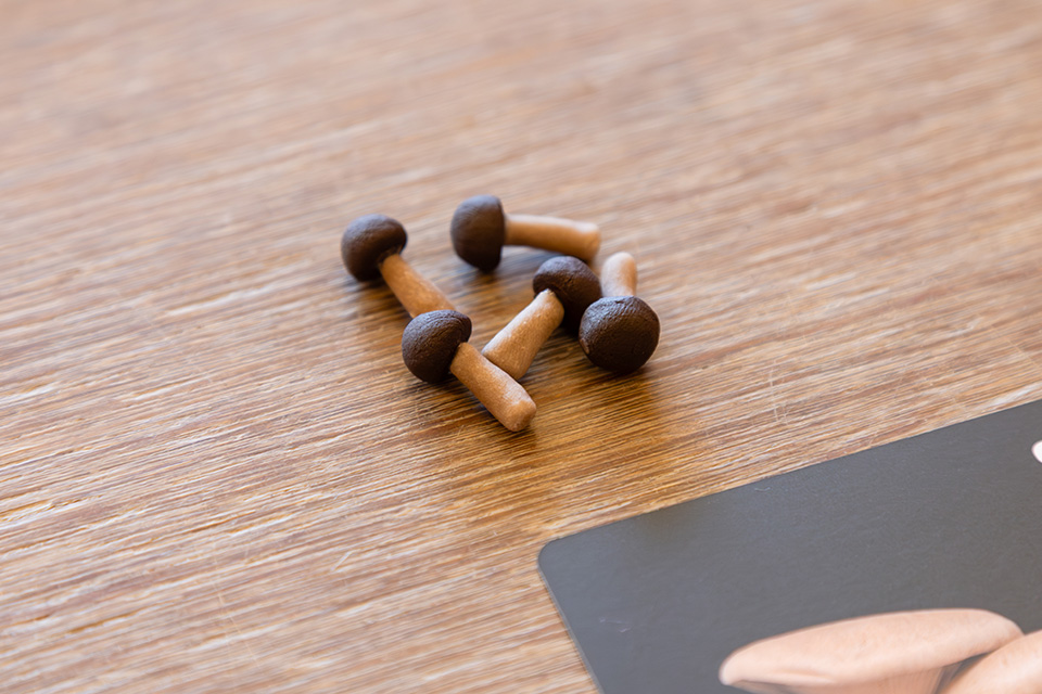 米田さん:僕もこれは、サンプルをいただいたときから気になっていました(笑)。説明書を読んでみたんですけど、カードに移されたエリンギたちの物語を考えて、その物語を当ててもらうゲームのようです。例えば、3つのエリンギのカードをみて、「これは家族で、家族構成は、父と母、子供で……」といった感じです(笑)