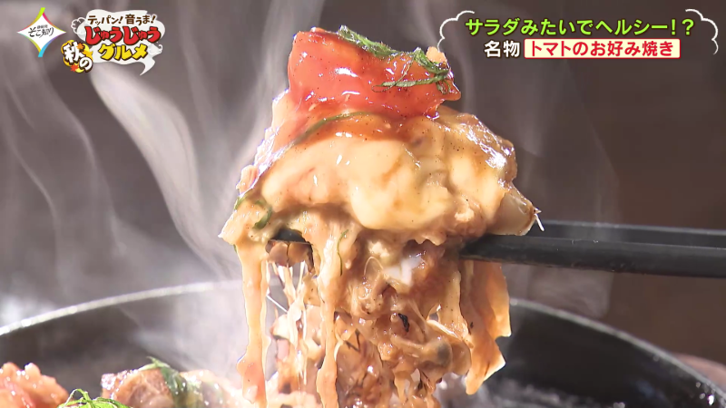 まずは店の看板でもあるお好み焼きから。名物『トマトのお好み焼き』です。