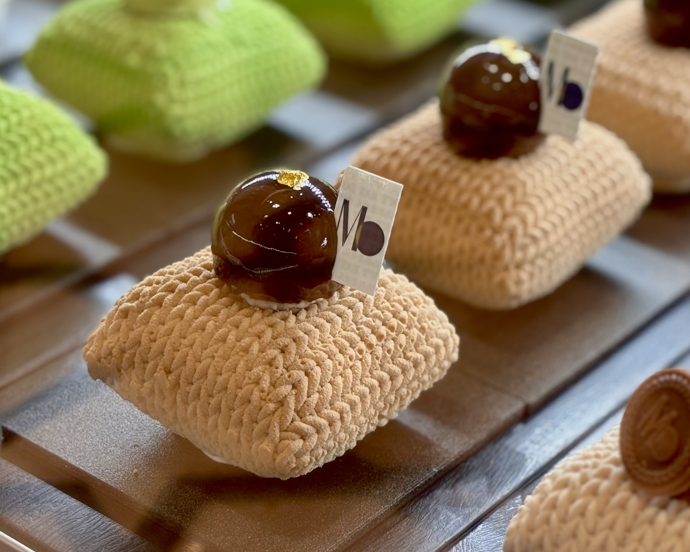 心地よい抹茶のほろ苦さと、くちどけのよいチーズのコクが重なり合い、異なる食感と味わいがひと口の中で調和する。構造の妙と味覚の奥行きを感じる、まさに「マサヒコ オズミ パリ」らしい逸品。