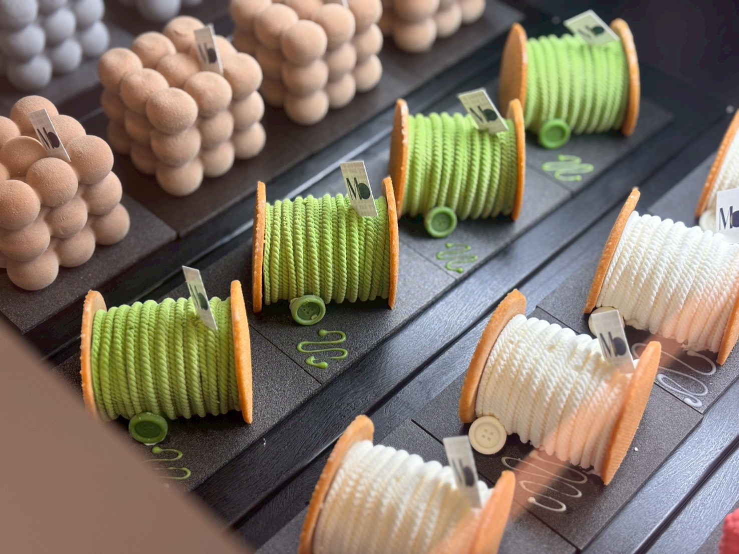 他では見ることのない“ボビン(糸巻き)”をモチーフにしたケーキ。なめらかな抹茶ムースの中に、濃厚なバスクチーズを閉じ込めたチーズケーキだ。