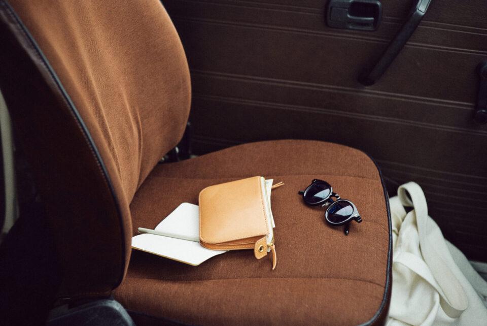 〈▲飯伏正一郎さんの革工房・RHYTHMOS(リュトモス)の定番は、牛ヌメ革を手縫いした財布「Zip(L)」〉