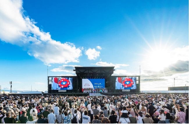 プログラムは3部構成。始まりは世界で人気の日本酒をキーワードに、多彩な日本の魅力をアピール。第2部のライブには、万博の公式テーマソング「この地球(ほし)の続きを」を歌った人気デュオのコブクロも登場した。