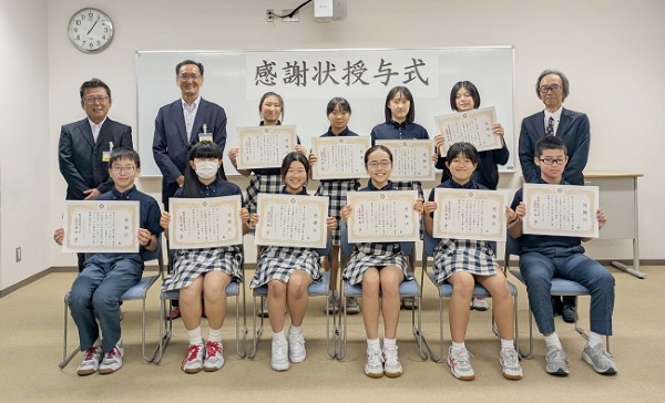 開智望にっぽんの宝物チームは、万博会場のWASSE(ワッセ)パビリオンでの「にっぽんの宝物ジュニアグランプリ」で常総線沿線の魅力や特別列車円転の経験を発表してグランプリ賞を受賞。関鉄はチームメンバーに感謝状を贈った。