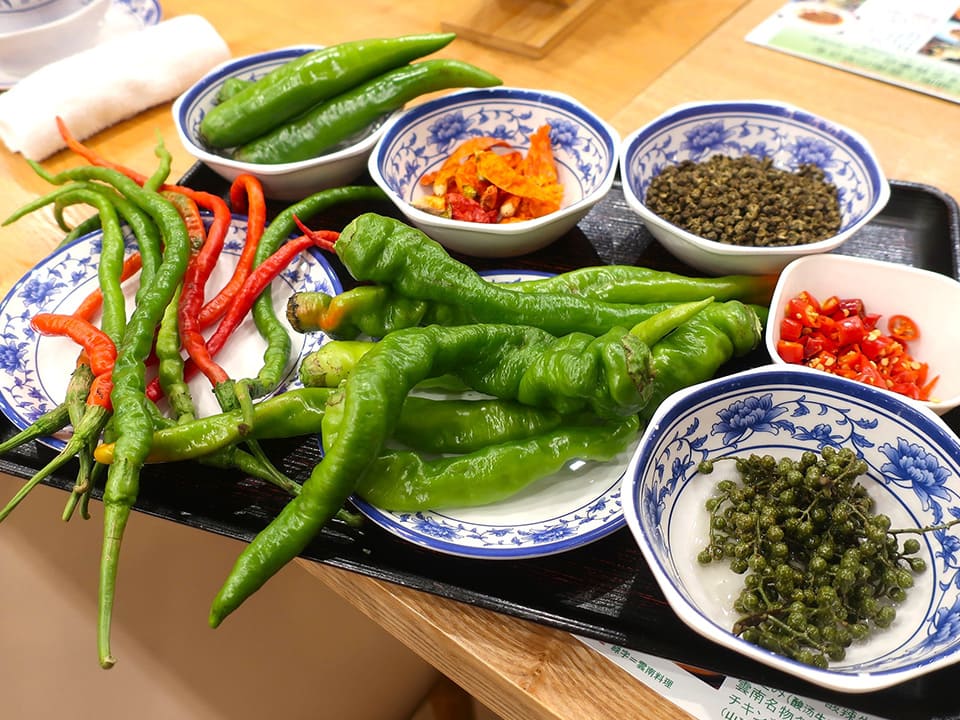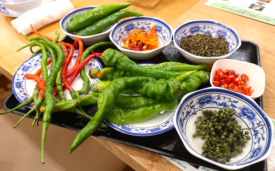 色鮮やかな中国の唐辛子や山椒、この日はふんだんに使われました。