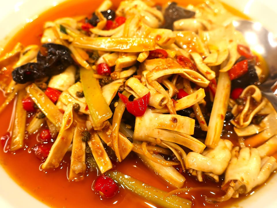 火爆黄喉 牛ハツモト強火激辛 炒め(四川料理)