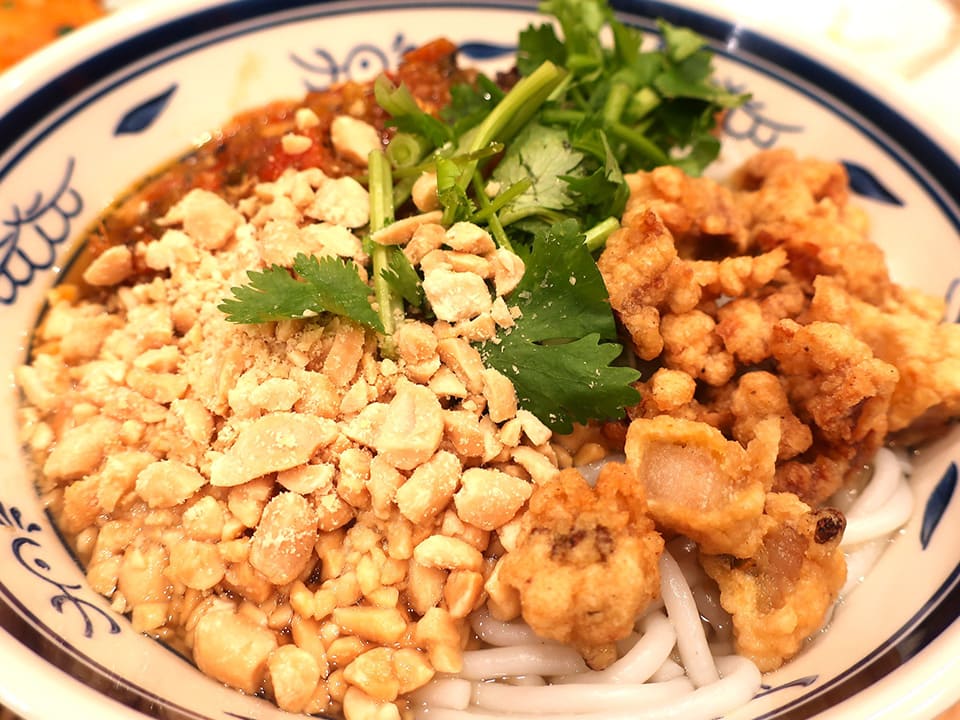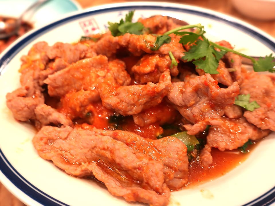 目にも鮮やかなミントの葉が使われ、タイ料理のラープ(牛肉のサラダ)にも似た味わいでした。数種の唐辛子ソースをまとった牛肉は肉肉しいですが、ミントが爽やかに口の中を駆け抜けていきます。辛さとミント、雲南料理もまた奥深いと実感した一品です。