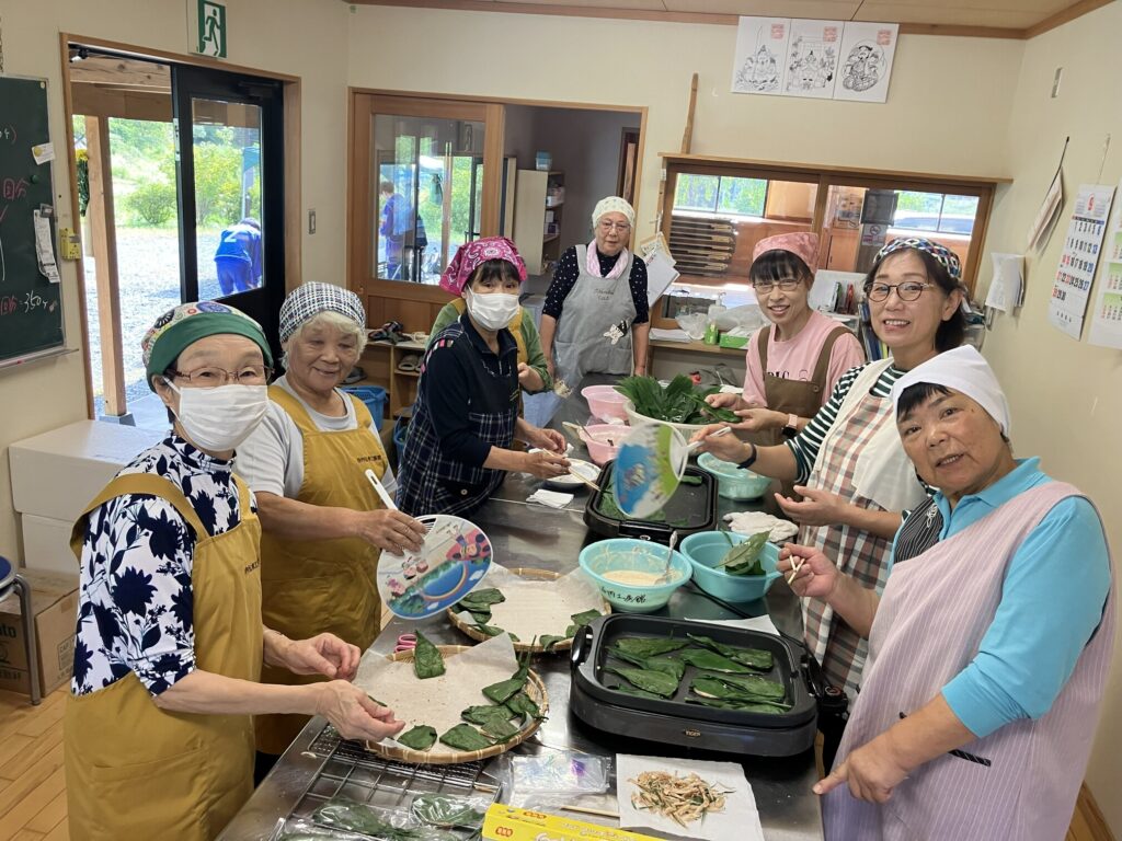 調理場では「みょうが葉焼き」を地元の方々が作ってくれています。