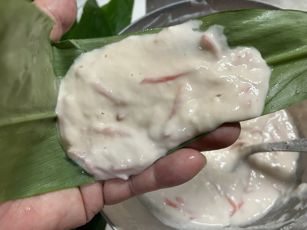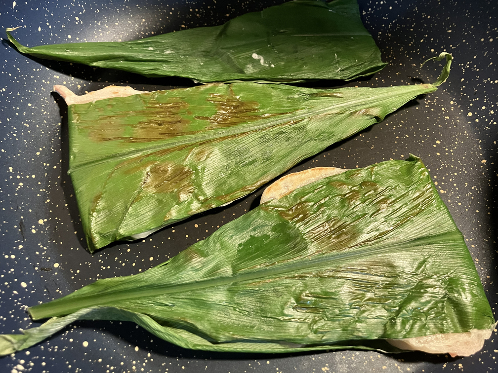 生地が緩かったのですが、上手く葉の上にのせれば大丈夫。