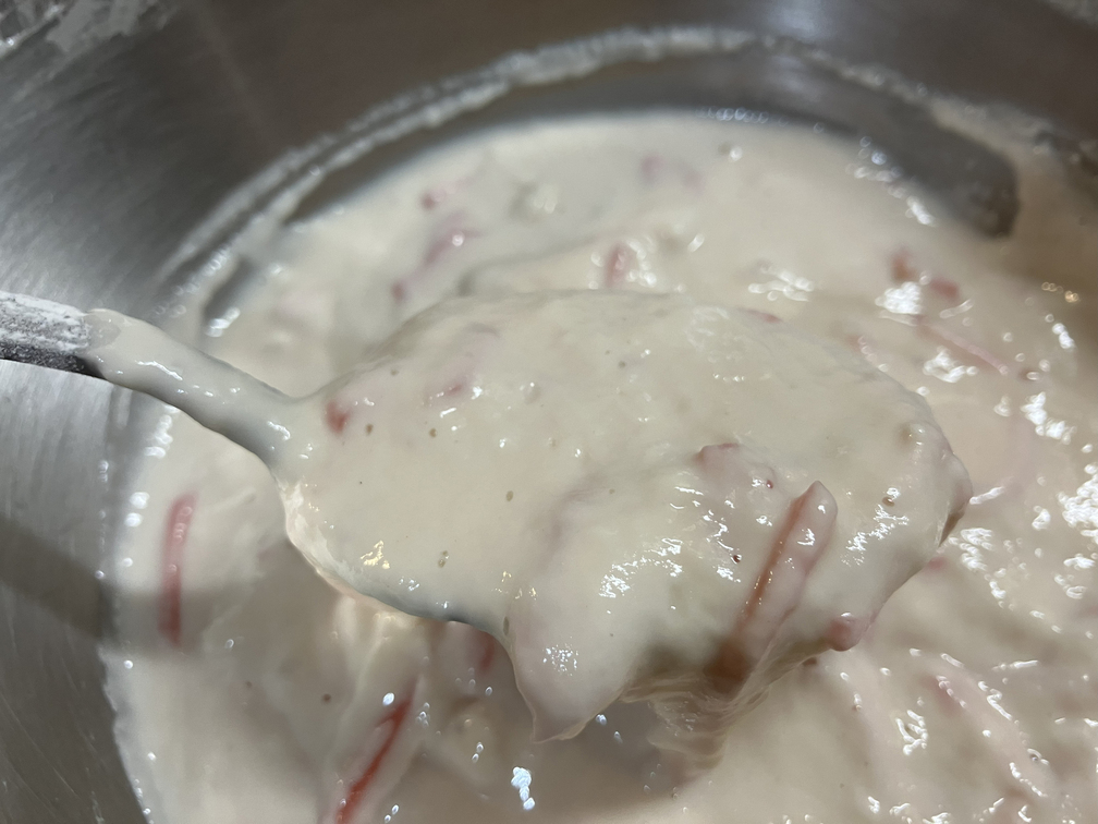 紅ショウガの汁を使ったせいか、ゆるめの生地になりました。