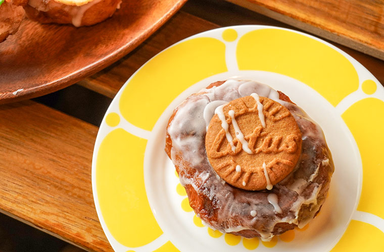 シナモン風味のロータスクッキーをドーナツの中央に飾ったこちらのフレーバーは、見た目のかわいらしさはもちろん、アイシングのまろやかな甘さとロータス特有のシナモンの香りが絶妙に調和した一品。ザクッとしたクッキーともっちりとしたドーナツ生地が重なり、味わいだけでなく食感のコントラストも楽しめます。