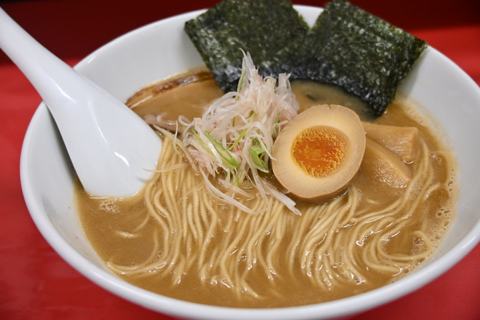 豚骨の旨みと香ばしい醤油風味が楽しめる一品。濃厚な見た目とは裏腹に、後味は思った以上にスッキリ!