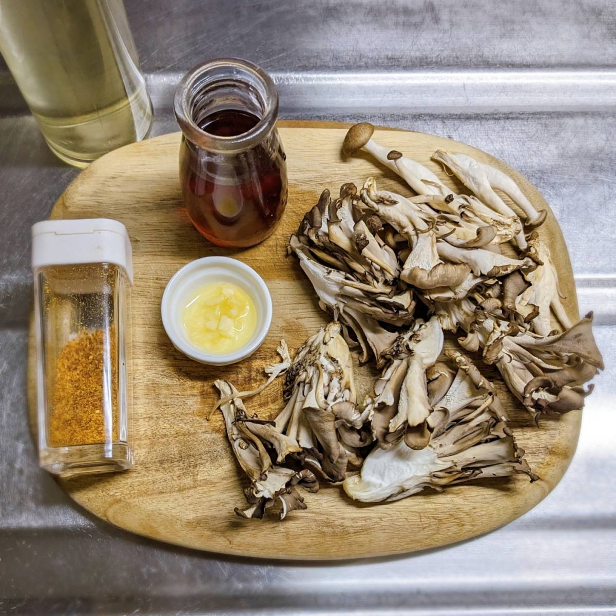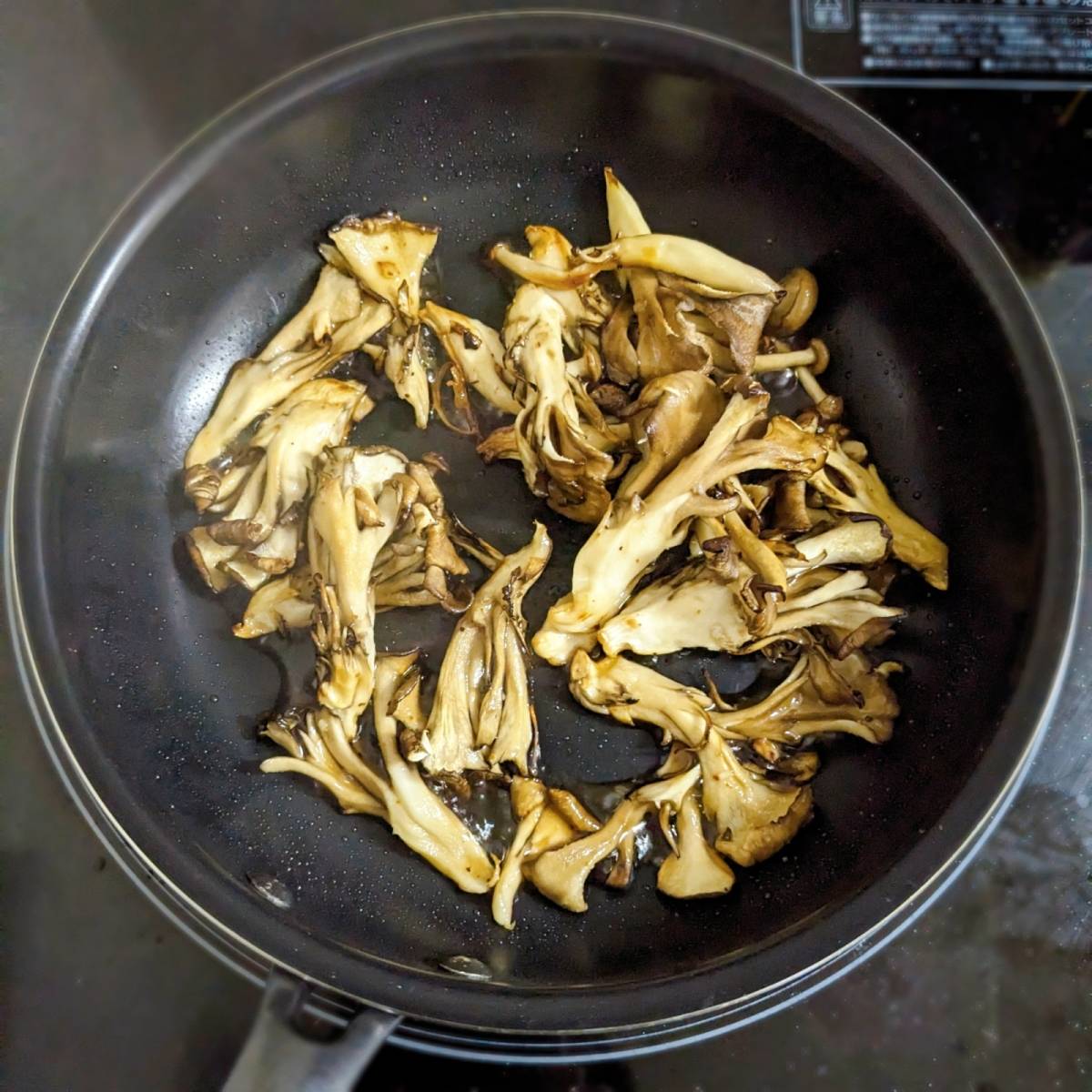 きのこは舞茸をメインに、余っていたしめじも使っています。
