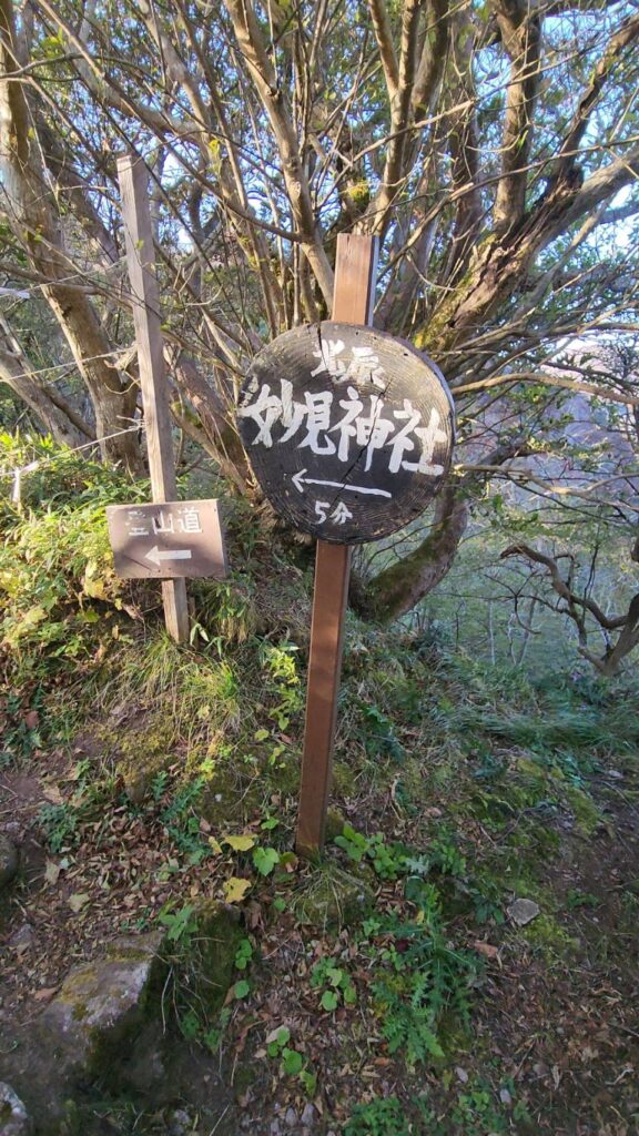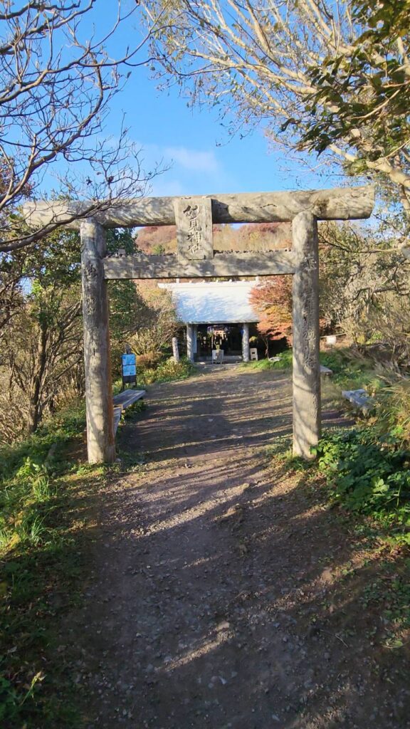 石碑の後ろにあるのは普賢神社。ちなみに神社は山頂付近にもあります(後述)。