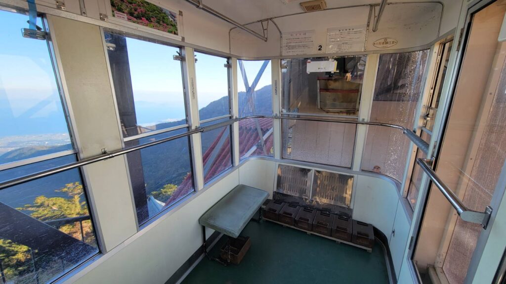 また、僕の勝手な感覚ですが、「行き」でお金を募るより、「帰り」に募ったほうが協力金はたくさん集まりそうじゃないですか?ロープウェイに満足して「そりゃ環境ば保全せんばよね~、協力するばい!」って思いそうなので。