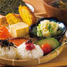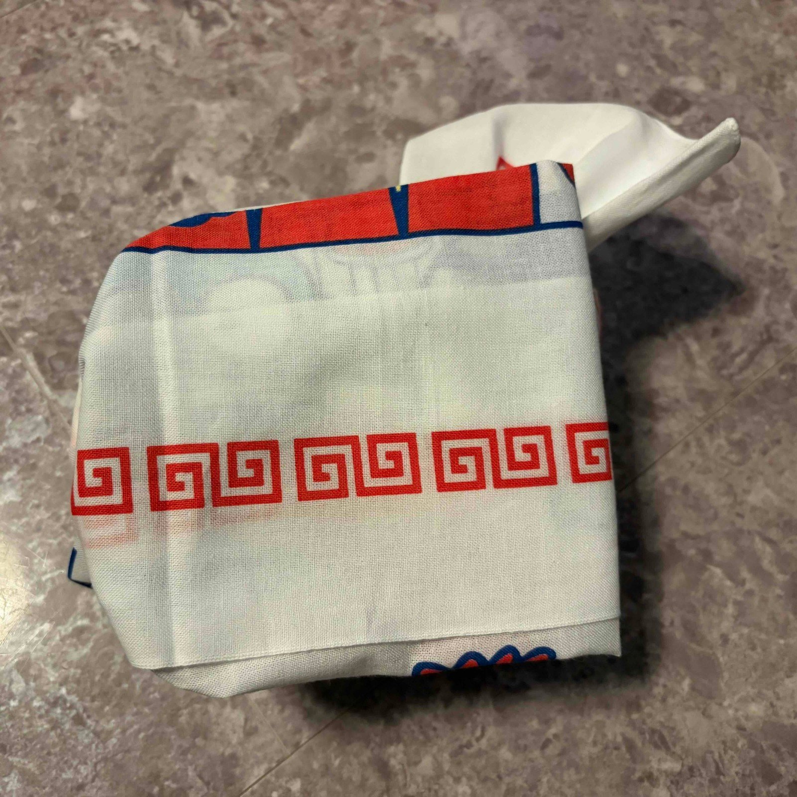【1】弁当箱を手ぬぐいの左寄りに置き、覆う