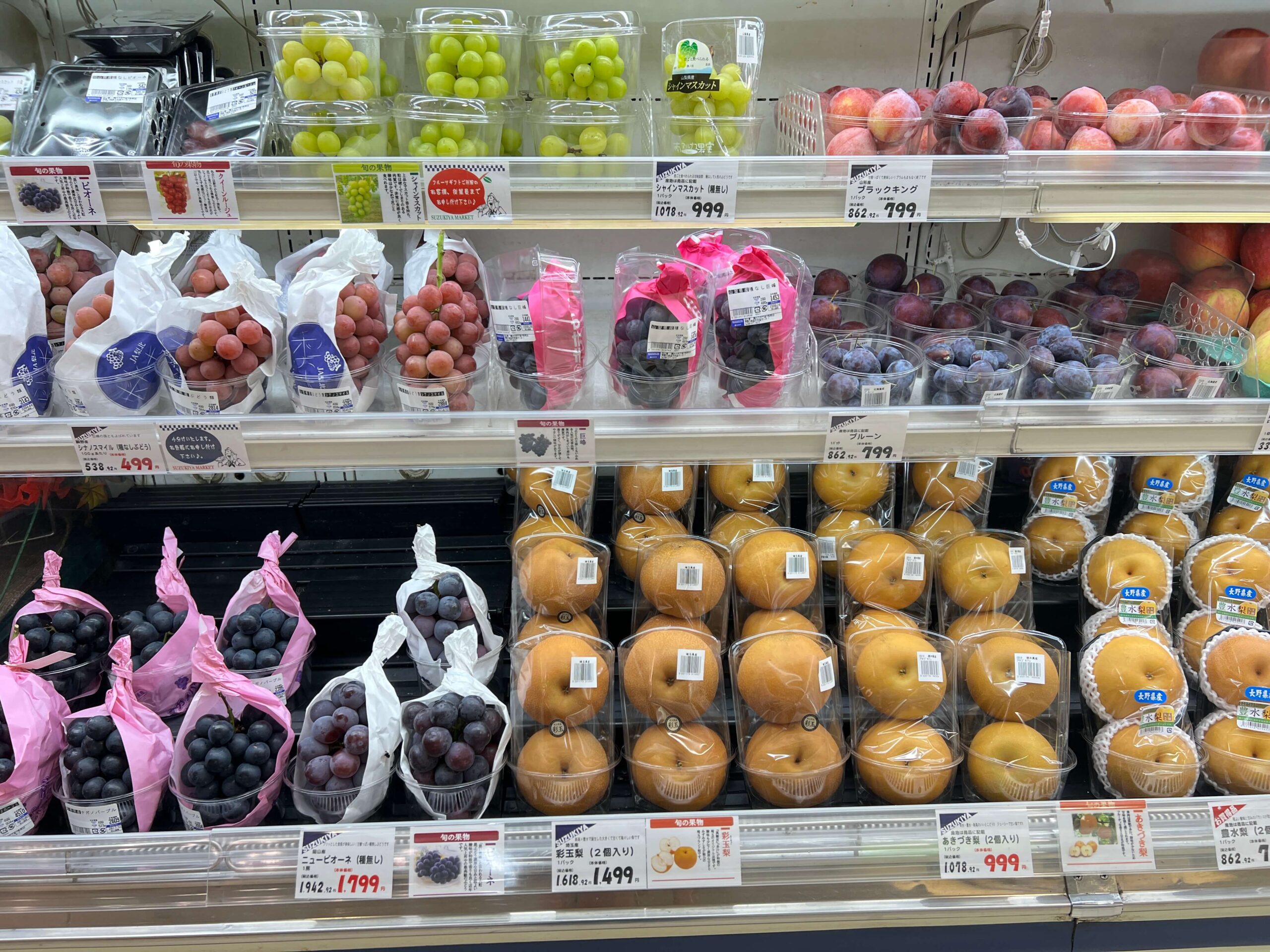 今の時期は、みずみずしいぶどうと梨が多く並んでいました。