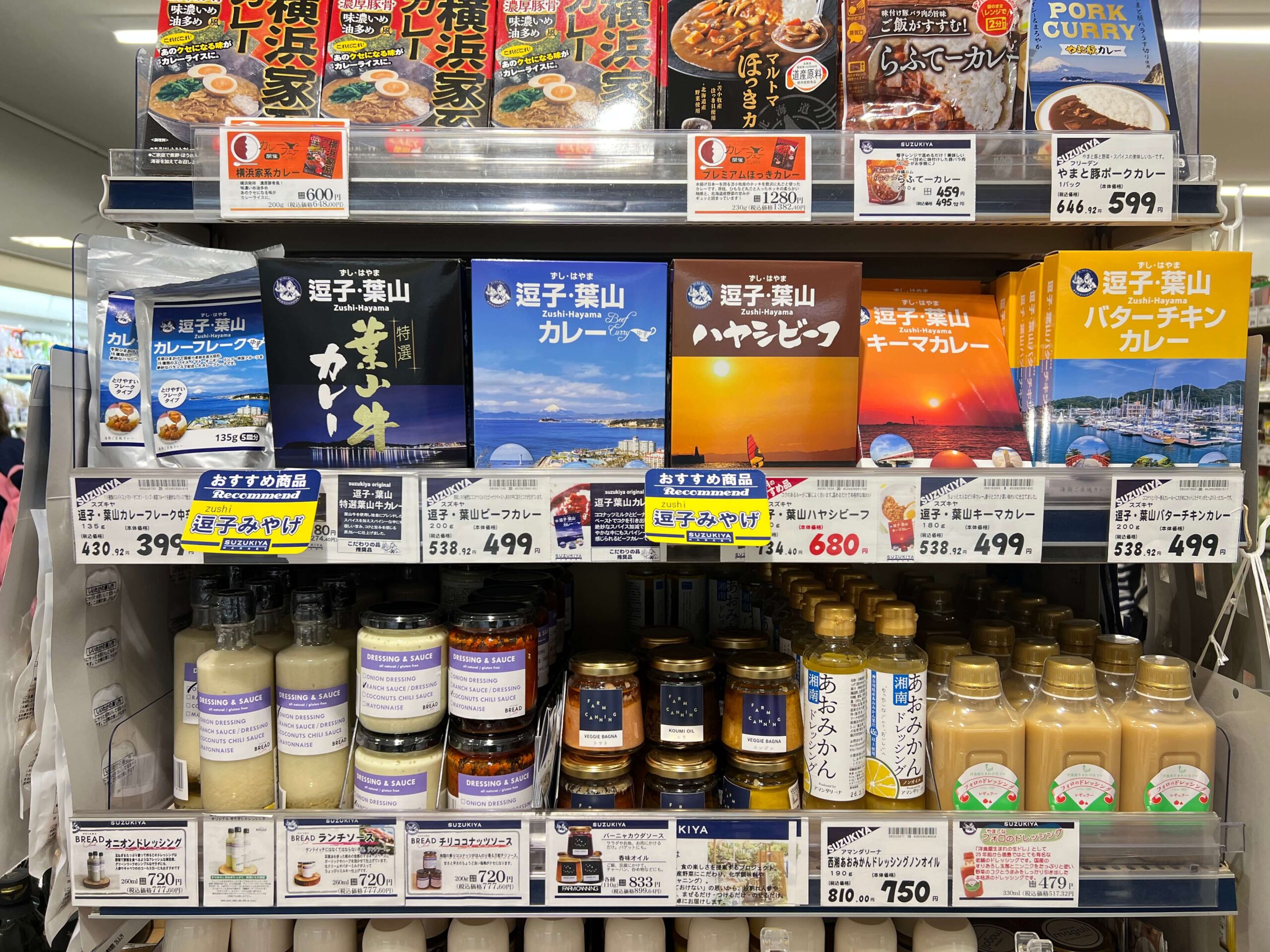 葉山で人気のパン屋の「HAYAMA BREAD Club」のサンドウィッチに使われているランチソースや、地元のもったいない野菜を使った「FARMCANNING」のバーニャカウダソース、鎌倉の「FOODSTAND magali」のEVERYDAY DRESSING、逗子で人気のオムレツ店の「SUNDOWNER TOKYO OMURETSU」のドレッシング、そしてスズキヤオリジナルのカレーなど。