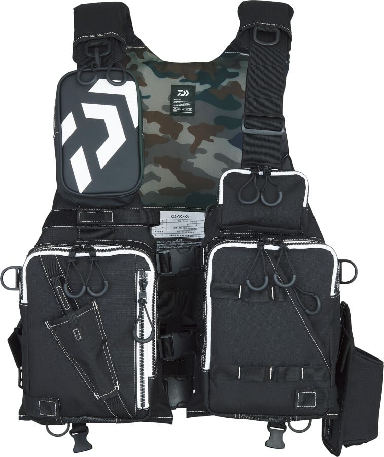 ウエーダーを履いて釣る際、万が一転倒するとウエーダー内部に水が入り込んでしまう。仮にここで腰巻きタイプの膨張式を着用していた場合、浮力が下半身に集中して身体が反転しやすく、顔が水中に沈む危険性が高まる。また収納力が求められることからも、固定式(ゲームベスト)を選ぶのが一般的。