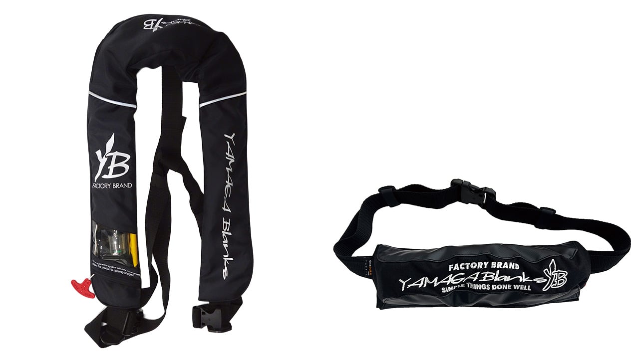 これらの多くは膨張式。定番は適度なフィット感があって安心度が高い肩掛けタイプだが、ジギングやキャスティングなどのルアー釣りで着用する場合は、腕を動かしやすい腰巻きタイプが人気。