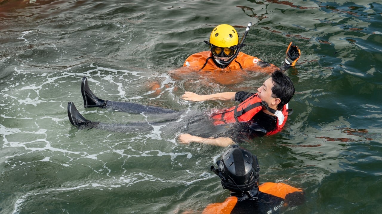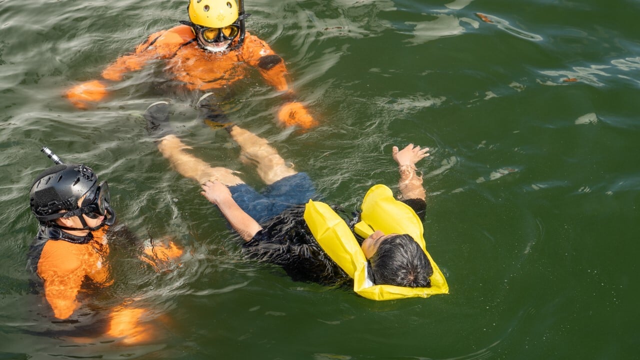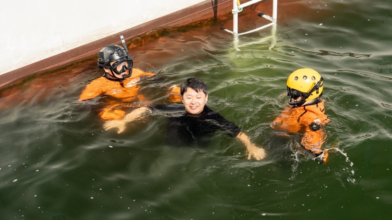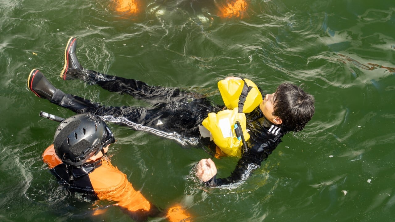2025年7月、小樽港で第一管区海上保安部主催のライフジャケット体験会が行なわれた。ライフジャケット非着用だと水面に顔を出しているのがやっと。このままでは体力が尽き、溺れてしまうのも時間の問題である。ライフジャケットを身に着けていれば、楽に身体を浮かすことができる