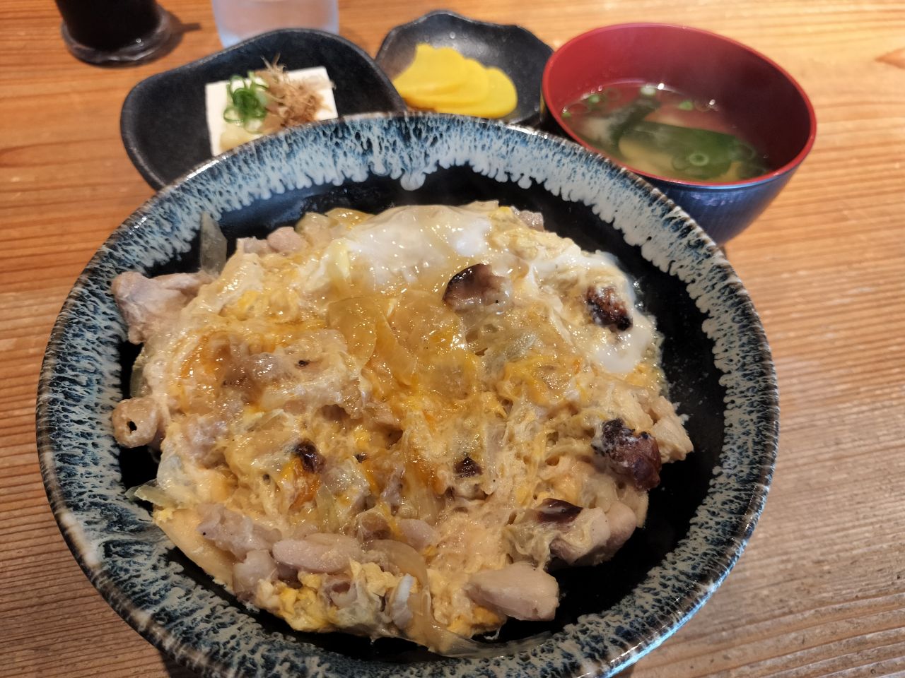 炭火で軽く炙った鶏肉は、香ばしさとジューシーさが絶妙に同居し、一口ごとに旨みが広がります。その上にとろりと半熟の卵が絡み、鶏のコクをやさしく包み込む。まさに“親子”のハーモニーを楽しめる一杯です。