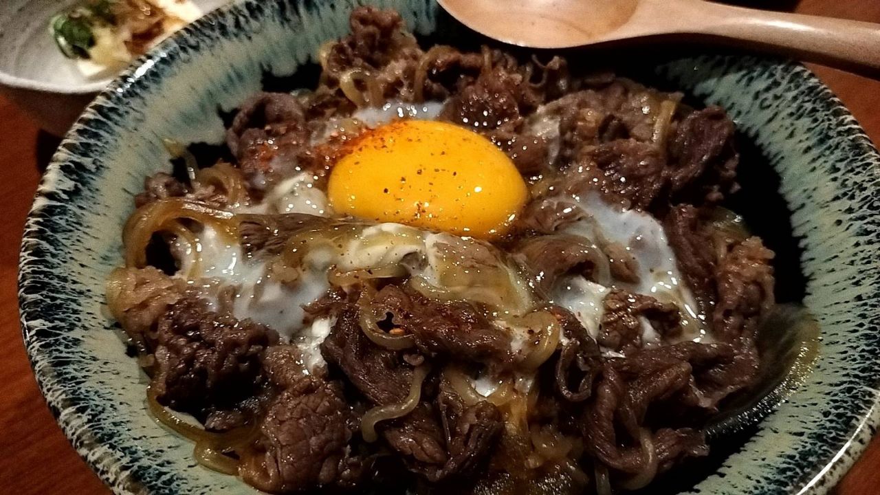 国産牛を使用した丼は、まるで上質なすき焼きのお肉を食べているかのような贅沢さで、やわらかく、しっかりとした肉のうま味が口いっぱいに広がります。