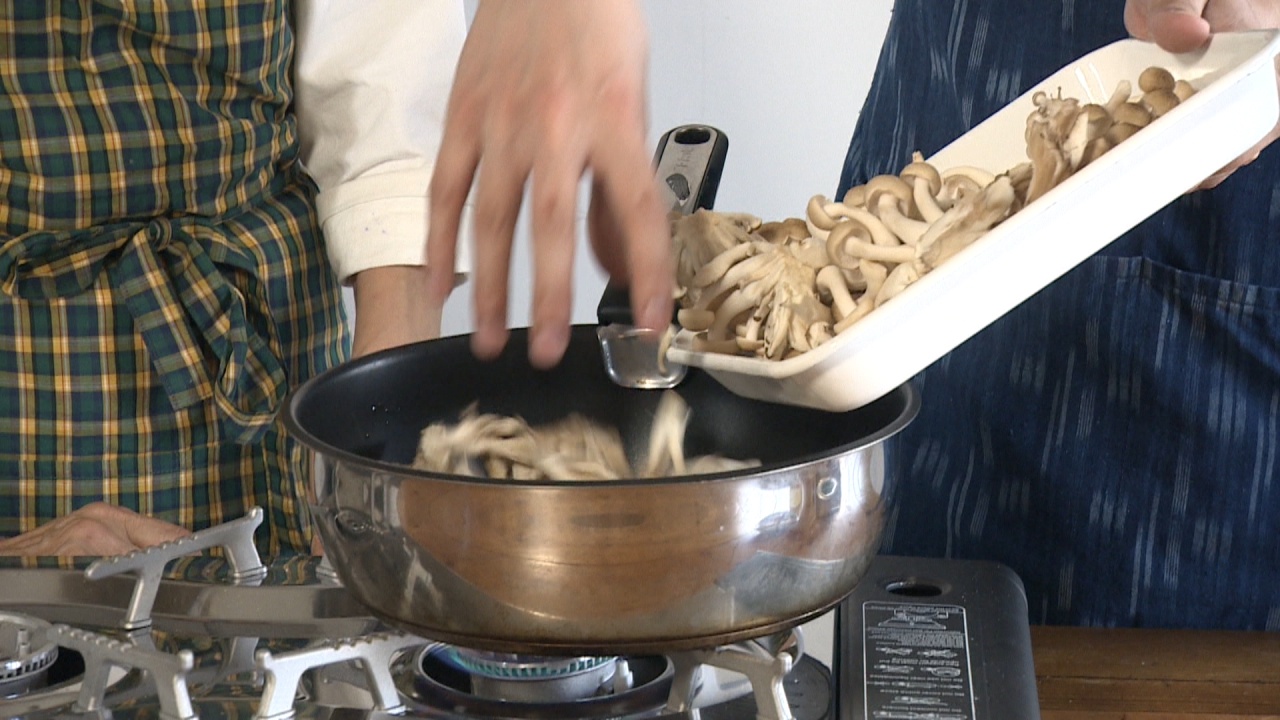 きのこは炒めると水分が抜けて旨味が凝縮されます。焼き目がつくまで炒めましょう。