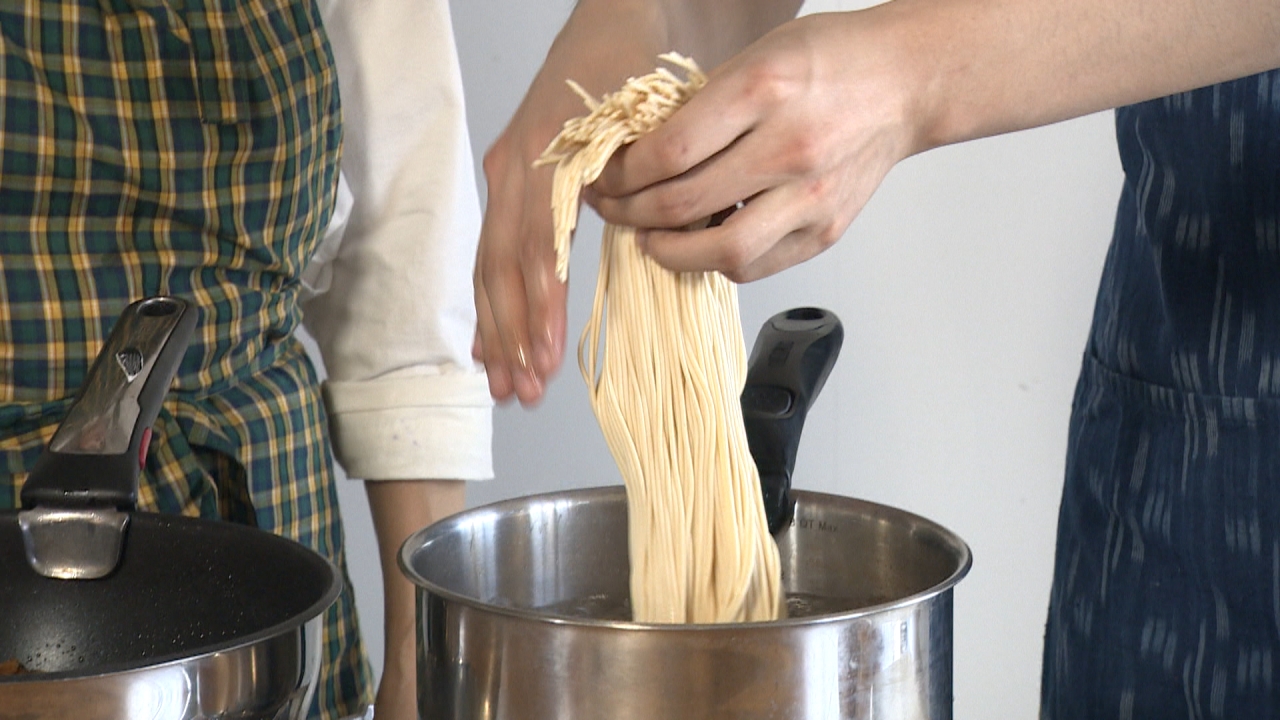 水につけておいた麺はやわらかくなっているので、ゆで時間は1分ほどでOKです。