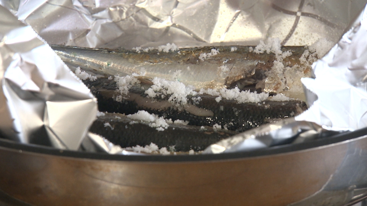 片面を焼いて、ひっくり返してから塩をしっかりめにふるのがポイント。パスタに合う塩加減になります。