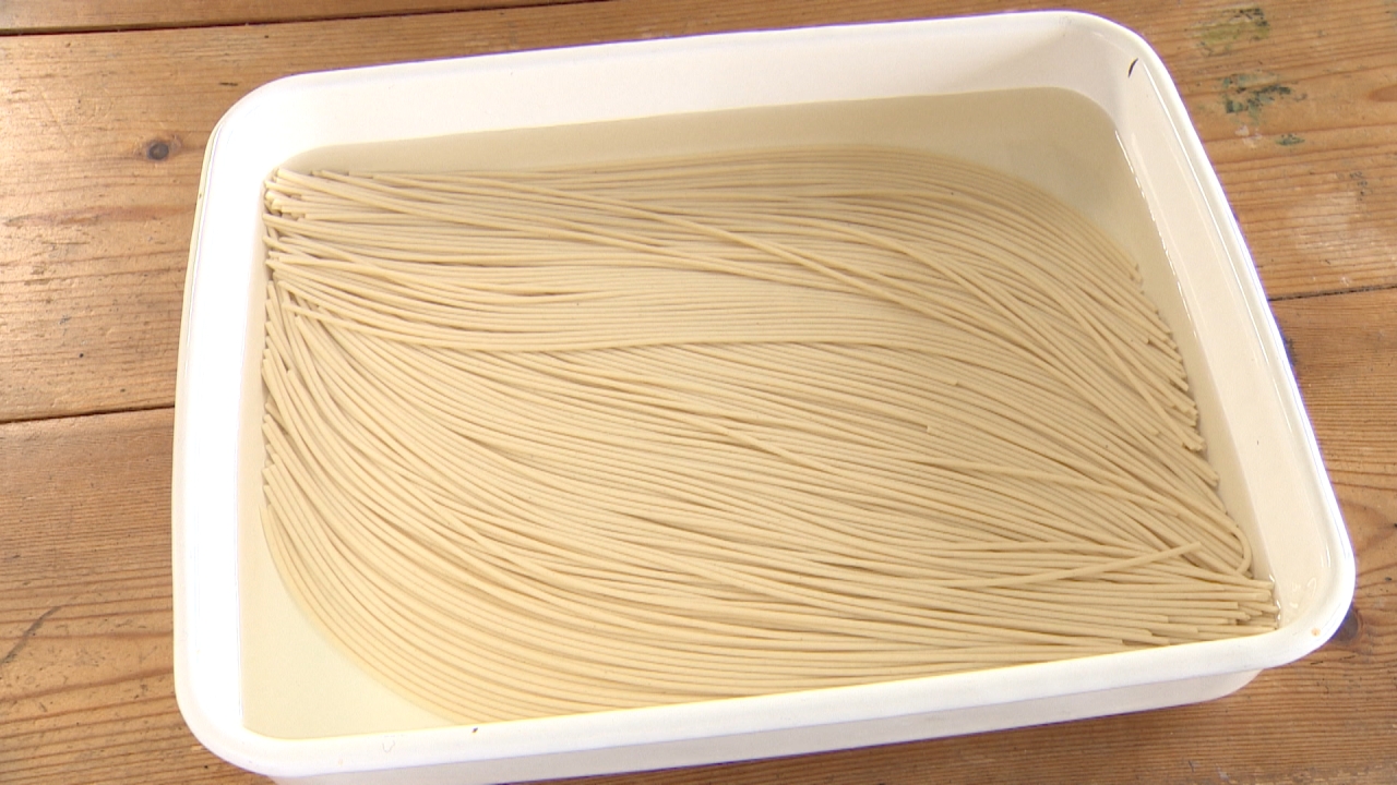 水につけておくと、ゆでたときにモチモチの食感になります。