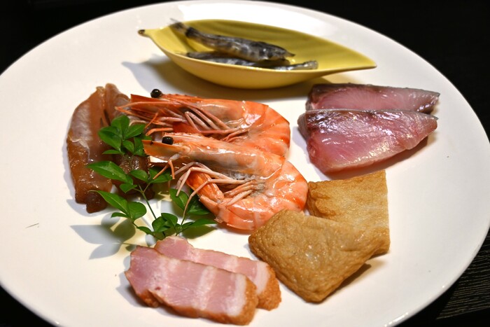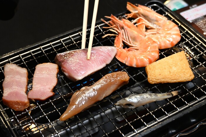 焼き物はベーコンにエビにフグ、高知らしいメヒカリにじゃこ天、またその時期の旬の魚も!