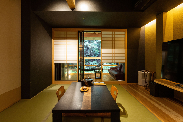 周りが山に囲まれていて、耳を澄ますと鳥のさえずりも。まさに癒しの宿といった雰囲気。