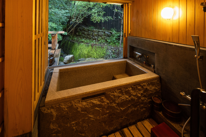 そして離れ宿は5室。こちらは全室「源泉掛け流し半露天風呂」付の贅沢なお部屋となっています。