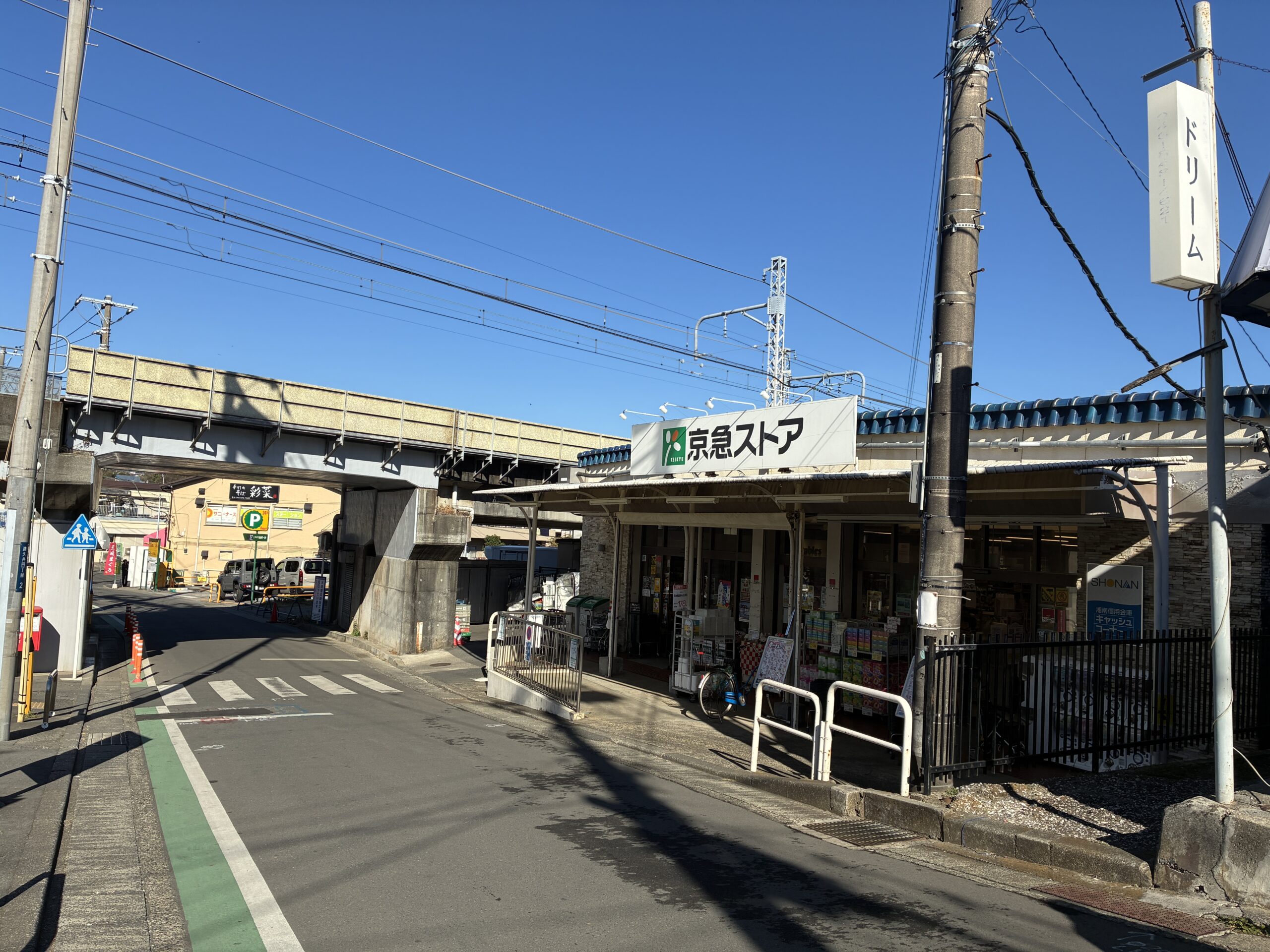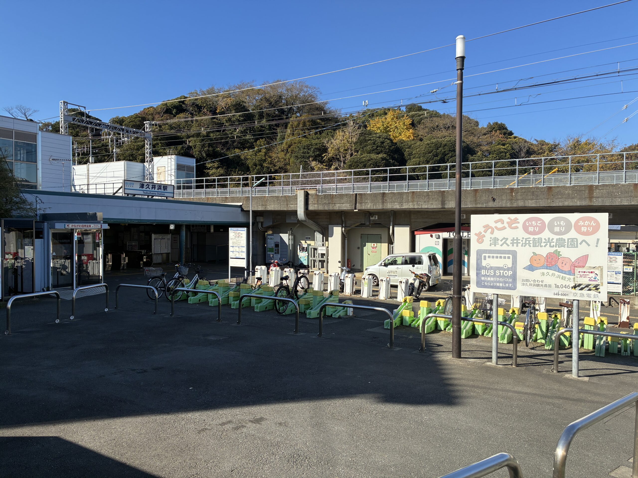 津久井浜駅の改札を出ると道を挟んだ正面に京急ストアがあります。その道を京急ストアに向かって左へと進みます。