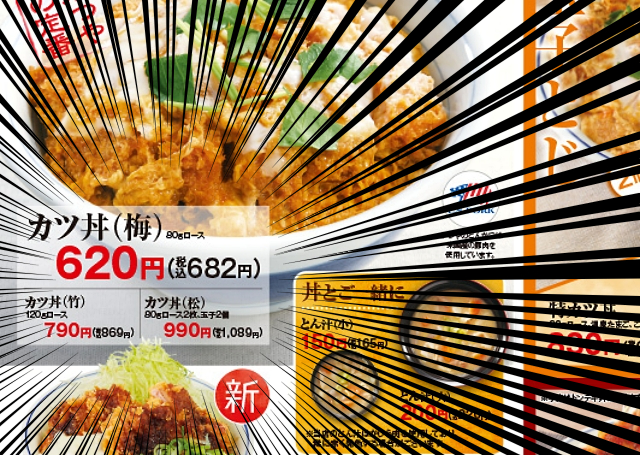 カツ丼(梅):税込649円 → 税込682円(+33円)