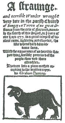 1577年、サフォーク州のバンゲイの町に現れた黒い犬は「Black Shuck」と呼ばれる。