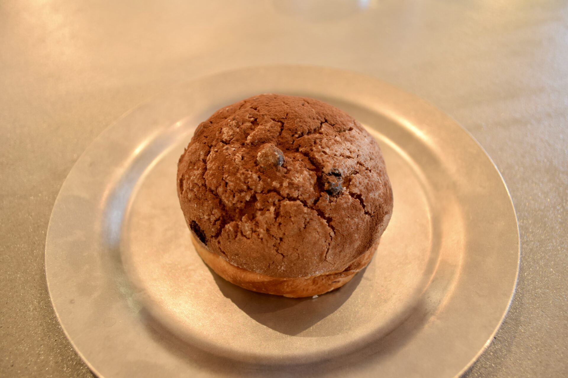 「チョコメロンパン」は外側がカリッと香ばしく、ココアパウダーが味わいを引き立てます。